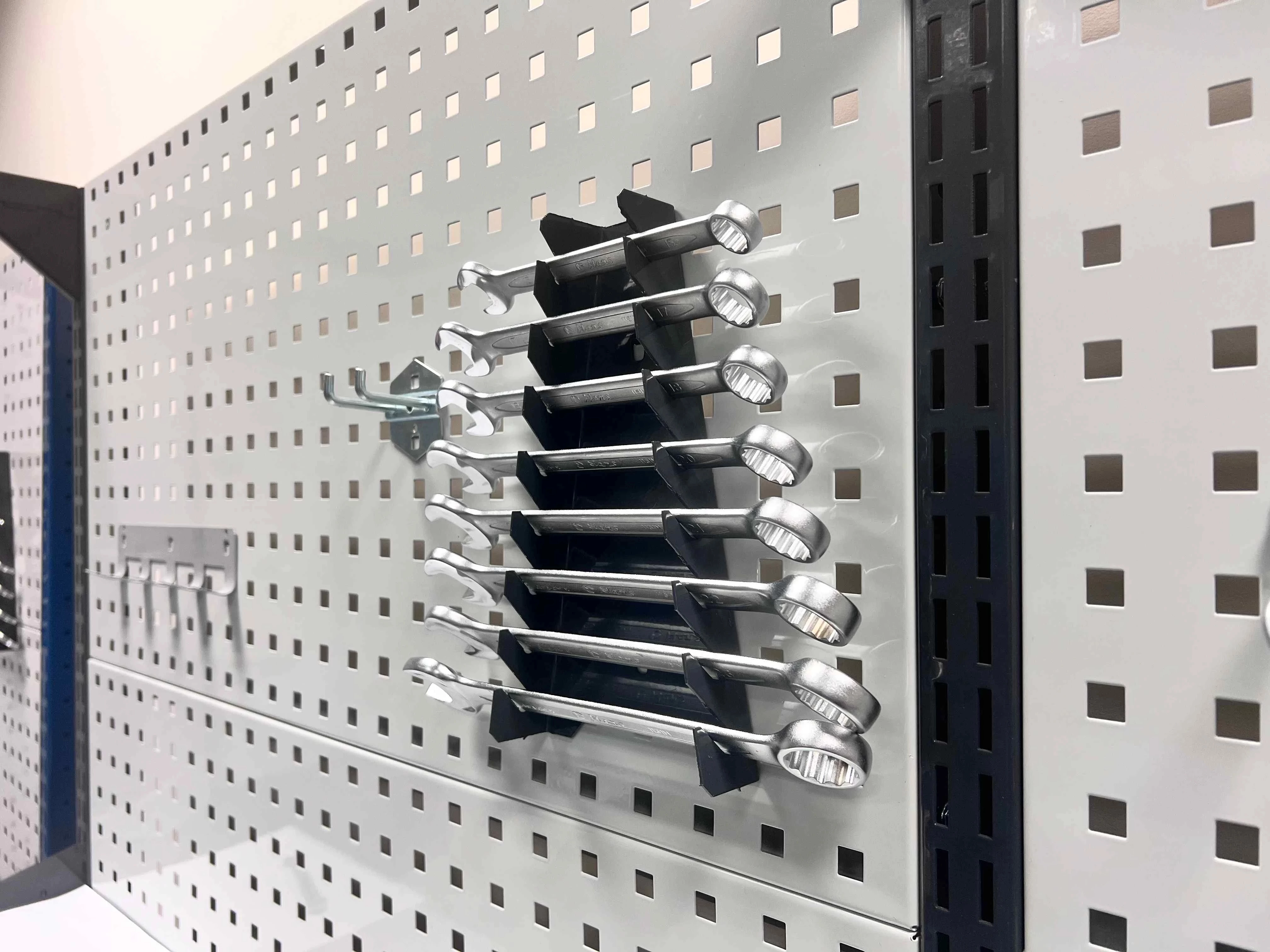 А вот модели «Экстра» шириной до трёх метров уже годятся для производственных нужд, ремонтных мастерских и сервис-центров. Большое количество разнообразных ящичных модулей и тумб, монтируемых под столешницу, существенно повышает эргономику рабочего места – как и возможность установки одной или двух полос из экранов с перфорацией, где удобно размещаются различные навески.